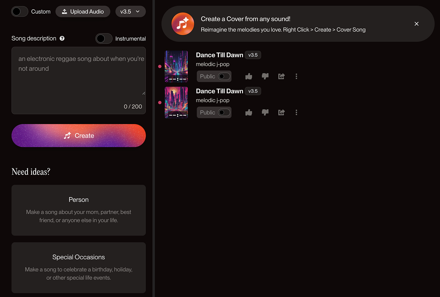 Mobile App: Released in mid-2024, the mobile app allows users to create songs on the go, though it offers fewer features than the desktop version.