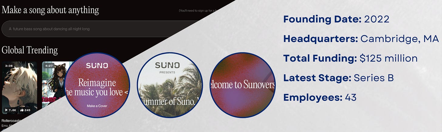 Suno AI is positioned as a key player in the rapidly growing generative AI music space, offering users a groundbreaking platform to create original music with minimal effort. Launched in 2022, the company seeks to democratize music creation by leveraging transformer and diffusion models to generate high-quality audio content from simple text prompts. Suno’s founders—Michael Shulman, Georg Kucsko, Martin Camacho, and Keenan Freyberg—bring deep expertise from their previous work at Kensho, an AI-driven data analytics firm. Their goal is to tap into the broader market for generative AI by targeting both professional musicians and casual creators.